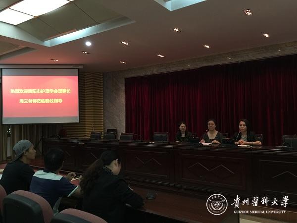 为了让同学更深刻地理解护理学专业,保障2013级实习工作的顺利开展,6月17日下午4:20分,我院在北校区道德讲堂召开了2013级护理专业思想教育暨2017届毕业实习动员大会。大会邀请到贵阳市护理学会理事长周云老师莅临指导,护理学院党委副书记杨英、副院长刘志燕、学生科科长曾敏、实习科科长柳忠燕、辅导员李海林、王晓玲及2013级全体同学参加了此次会议。