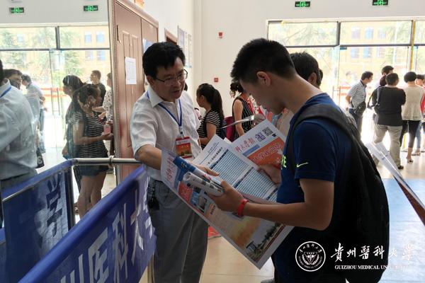 在招生宣传现场,前来咨询的考生和家长纷至沓来,基础医学院老师就学校的办学条件、专业设置、师资力量、人才培养、校园文化、录取分数等问题进行了详细的介绍,耐心、细致地解答现场提出的各类问题,并为考生及家长填报志愿提供科学合理的建议。