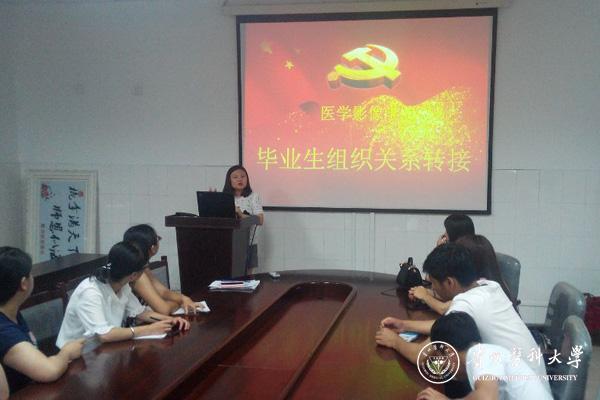 为充分发挥毕业生党员在就业及文明离校工作中的先锋模范带头作用,做好毕业生党员组织关系转接工作,6月26日中午,医学影像学院学生党支部在北校区影像学院会议室开展了2016届毕业生“最后一次党课”活动。