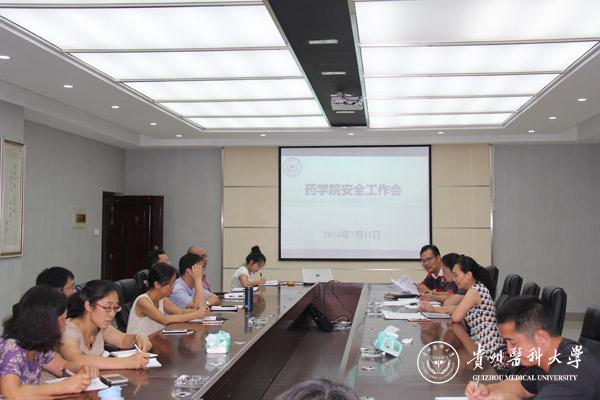 7月11日上午,在格物楼6楼会议室,药学院召开安全工作会议,会议由药学院党政领导主持,药学院各科室主任参加。