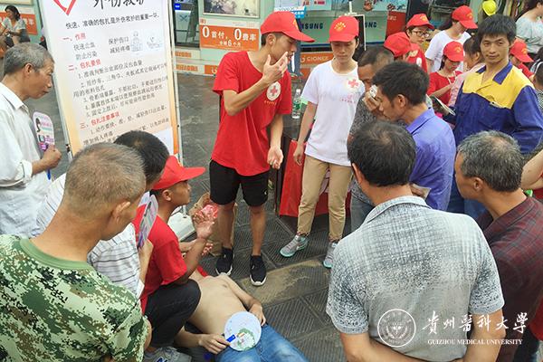同学们在服务过程中,充分发挥自己的学科优势和专业技能,一方面从医学的角度向群众普及医药知识,包括避孕套的使用在对于艾滋病的防护以及计生问题上的重要性,避免群众对于药物及避孕套使用的误区;另一方面,进行红十字急救培训并示范常见外伤包扎方法,测量血压评估社区人群健康状况,以所学服务家乡人民,回报社会。