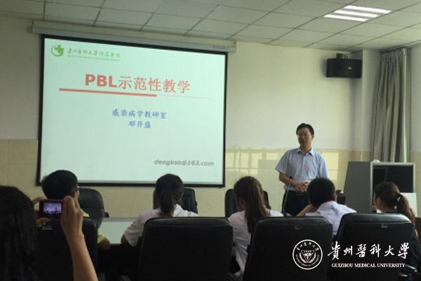 在CBL/PBL演示观摩会上,方旭明老师对神经学课程中PBL教学情况进行介绍;朱祥路老师就精神病症状学进行CBL示范;邓开盛老师进行了肝硬化PBL示范。