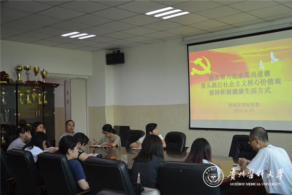 8月29日下午,临床医学院党委组织召开“两学一做”第四次专题学习讨论,讨论会由临床医学院党委书记周红主持,全体党员参加了会议。会议重点围绕能否努力追求高尚道德、带头践行社会主义核心价值观、保持积极健康生活方式进行。