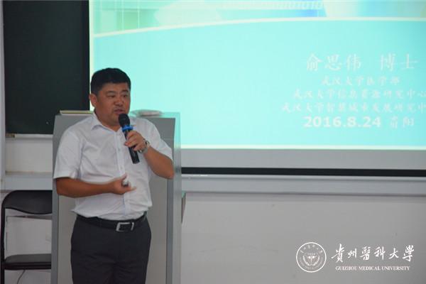 8月24日下午16点30分,临床医学院举办杏林微雨人文论坛第四讲。武汉大学医学部信息技术主管、信息资源研究中心研究员、智慧城市发展研究中心研究员俞思伟博士受邀在北校区临床技能中心三楼会议室为我院职工作“人工智能与智慧医学教育”专题讲座,讲座由临床医学院党委书记周红主持。学校附属医院副院长、临床医学院常务副院长孙发,临床医学院副院长戚璐、艾戎,各教研室主任、副主任,各三级学科主任、分管教学副主任、教学组长、学科带头人、骨干教师、临床医学院副科级以上干部及相关职能科室人员参加此次讲座。