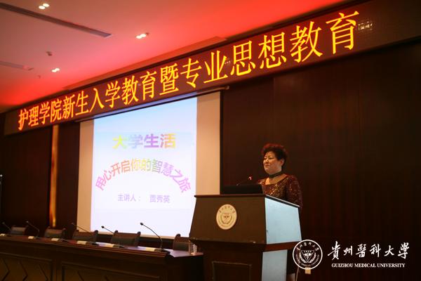9月7日下午护理学院党委书记贾秀英和常务副院长郭永洪在太阳成集团tyc33455cc官网南校区道德讲堂对护理学院2016级新生进行了新生入学教育和专业思想教育。