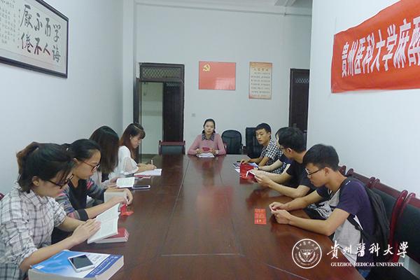 为扎实推进“两学一做”学习教育,麻醉学院学生党支部于9月8日上午九点在北校区麻醉学院会议室开展了“两学一做”专题学习会。参加会议的成员有麻醉学院学生党支部书记周霁和全体学生党员。
