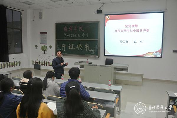 11月24日下午,麻醉学院党校第四十五期入党积极分子培训班开班典礼在X7607教室举行。学院党委书记刘建华、综合办主任何为、教学科研管理科副科长文钰纾、辅导员徐青及全体学员参加。开班典礼由学生党支部书记周霁主持。
