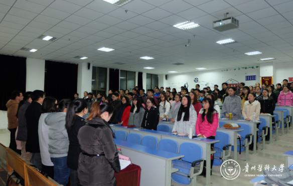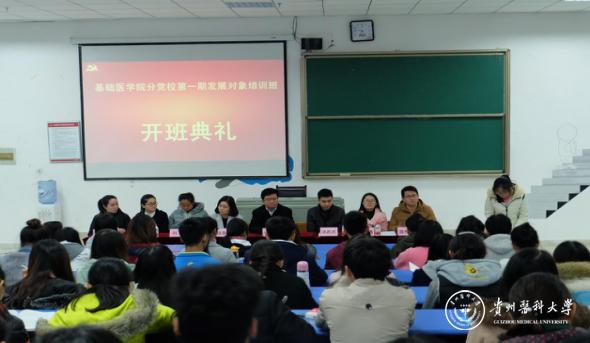 11月29日下午,基础医学院分党校第一期党员发展对象培训班开班典礼在花溪校区广德楼1201教室举行,基础医学院党委书记徐国强老师出席并讲话,学生管理科科长汤武庆老师及全体辅导员出席。基础医学院、口腔医学院、医学检验学院、医学影像学院、外国语学院5个院系部共计99名发展对象参加开班典礼。