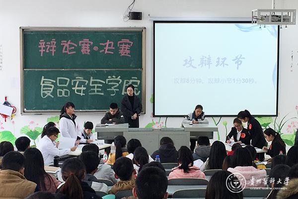 食品安全学院于12月2日中午在明理楼7203教室举行了首届“食安杯”辩论赛。2015级代表队和2014级乙班代表队经过初赛选拔顺利晋级决赛,辩题为“成功的关键是努力还是机遇”。学院党委书记兰玲、党支部书记杨卫灵、宣传委员原琦、辅导员陈卫娅等老师担任评委,各班级学生代表为参赛选手加油助威。