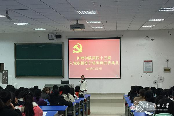 12月5日下午,护理学院在南校区1404教室召开了第45期入党积极分子培训班开班典礼,护理学院党委副书记杨英、护理学院教工党支部支委毕丽、护理学院学生第一党支部书记李颖和133名入党积极分子参加了活动。