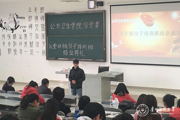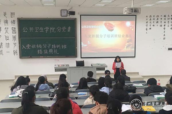 12月13日中午,公共卫生学院分党校第45期入党积极分子培训班结业典礼在南校区4505教室举行。公共卫生学院党委书记杨光红、副书记何江、学生科科长兼学生第一党支部书记刘亮,学生第二党支部书记孙静以及101名学员参加了此次结业典礼。结业典礼由孙静主持。