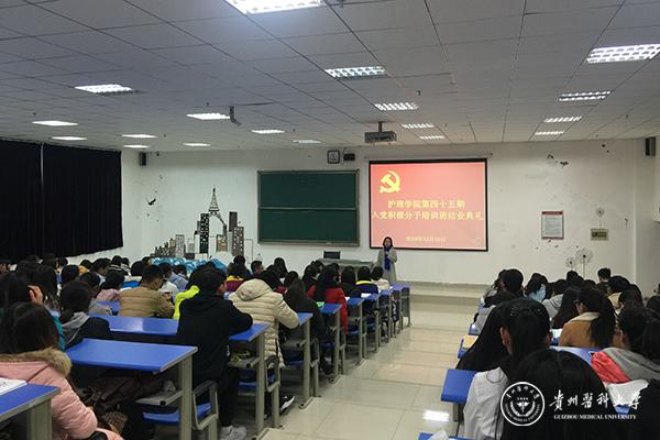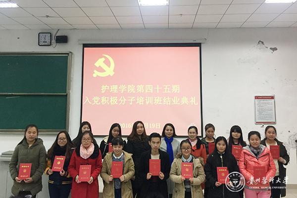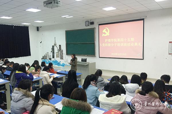 12月19日下午,护理学院第四十五期入党积极分子培训班结业典礼在太阳成集团tyc33455cc官网南校区1404教室举行,护理学院党委副书记杨英、护理学院教工党支部支委毕丽、护理学院学生第一党支部书记李颖和133名入党积极分子参与了结业典礼。