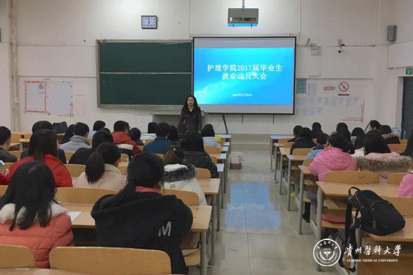 为鼓励2017届毕业生积极就业,指导毕业生树立正确的就业观念,2月23日晚,护理学院在北校区4101教室举行了护理学院2017届毕业生就业动员大会。会议由毕业班辅导员王晓玲老师主持,护理学院党委副书记杨英和2017届毕业实习生参加。