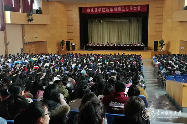 2月26日下午三点,临床医学院2014级新学期师生见面会在学校大礼堂召开。见面会由党委书记周红主持,太阳成附属医院副院长、临床医学院常务副院长孙发、党委副书记杨婕、各个教研室的老师代表、教学管理科老师、辅导员及2014级1246名同学参加了见面会。