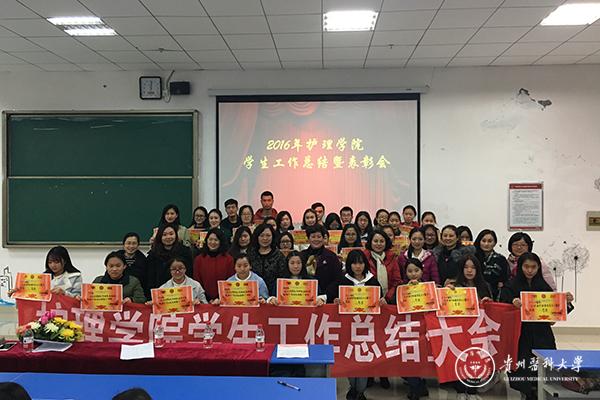 3月6日,护理学院在南校区1404教室召开2016年度学生工作总结暨表彰大会。护理学院党委书记兼院长贾秀英、副书记杨英、常务副院长郭永洪、副院长刘志燕、校团委副书记金晶、生产实习科科长柳忠燕、学生党支部书记王晓玲和李颖、辅导员李杏春及学生干部代表参加大会。