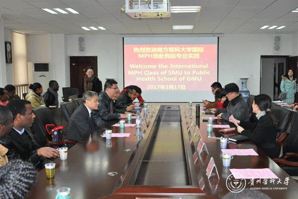 为加强学校之间交流合作,提升公共卫生专业(MPH)学生专业实践技能。3月17日,教育部商务部国际MPH班(南方医科大学)同学在南方医科大学公共卫生学院院长邹飞、副院长万成松、国际教育学院副院长曹山鹰、毒理系主任刘云岗等老师的带领下一行20人到太阳成公共卫生学院进行专业实践教学交流。交流会在南校区博雅楼二楼会议室举行,会议由公共卫生学院院长洪峰主持。公共卫生学院党委书记杨光红、综合办公室教学科研管理科、MPH研究生导师和研究生30余人参加了交流会。
