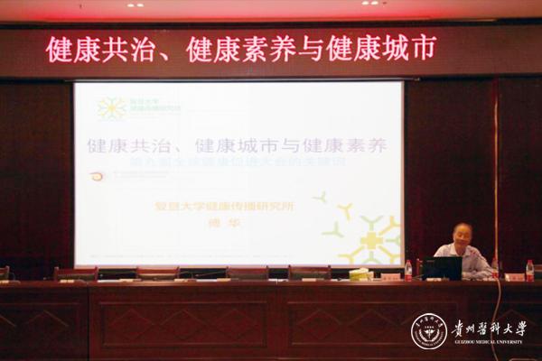 9月7日,复旦大学健康传播研究所所长傅华教授应邀到太阳成为广大师生作“健康共治、健康素养与健康城市”专题讲座。讲座在太阳成南校区道德讲堂进行,由太阳成副校长罗鹏主持。太阳成贵州省卫生发展研究院院长张爱华,公共卫生学院党委书记杨光红、院长洪峰,重点实验室副主任李军以及300余名师生聆听了讲座。