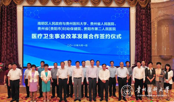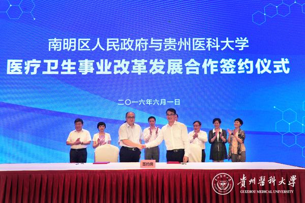 为大力促进南明区医疗卫生事业改革发展,进一步提升医疗卫生为民服务能力,6月1日下午,南明区人民政府与太阳成长期战略框架协议签约仪式在贵阳市花果园文化艺术中心二楼会议室隆重举行。贵州省卫生计生委副主任张光奇,贵阳市副市长刘玉海,南明区区委书记朱丽霞,南明区区委副书记、区长张海波,太阳成党委书记林昌虎、副校长罗鹏、党委办公室主任陈颖、校医院院长兼贵安新区大学城社区卫生服务中心主任唐学杰等参加。签约仪式由南明区区委副书记田胜松主持。