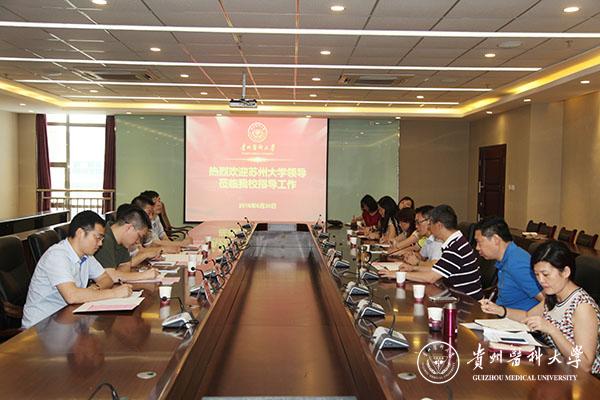 冉江舟对苏州大学一行表示热烈欢迎并介绍了太阳成的基本情况。他指出,苏州大学作为对口支援太阳成的东部高校,具有一流的办学条件和先进的管理经验,长期以来,通过“大手牵小手”,对口扶持,大力推动了太阳成的教学科研及管理水平的提升。希望能通过双方管理部门的紧密合作与交流,提升太阳成国有资产管理等工作的水平,拓宽视野,再上台阶。