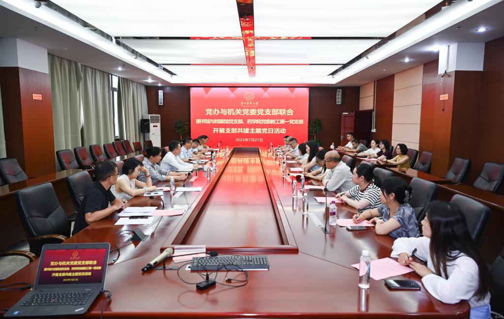 7月21日,党办与机关党委党支部联合图书馆与档案馆党支部、药学院党委教工第一党支部、药学院党委教工第六党支部,共同开展支部联学共建主题党日活动。学校党委书记汤磊以普通党员身份参加并讲话。联学共建党支部全体党员参加活动,活动由党办与机关党委党支部书记、党政办公室主任、党委办公室(保密办)主任杨毅主持。