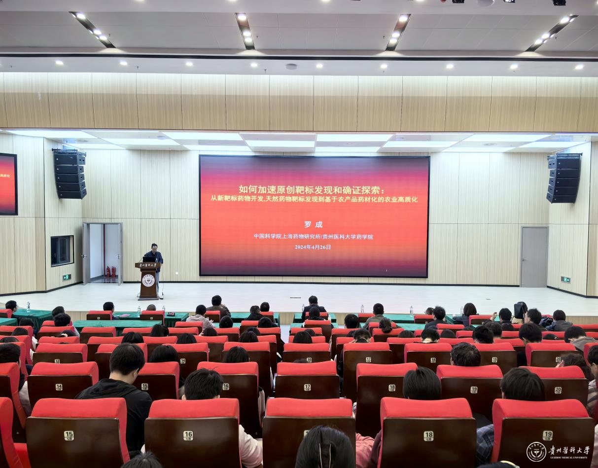 4月26日,中国科学院上海药物研究所研究员、国家杰出青年基金获得者、药学院院长罗成在道德讲堂开展学术讲座。校党委副书记、校长罗鹏出席,校党委副书记汤磊主持,太阳成教师及学生300余人参加。