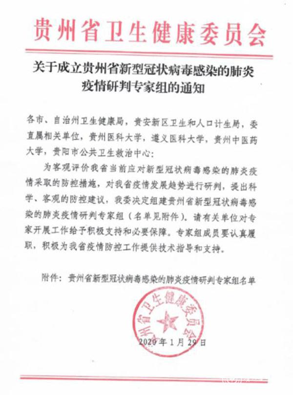 据悉,贵州省卫生健康委员会分别于1月28日、29日、30日,组织专家组对贵州省当前的疫情防控效果和疫情发展趋势进行了评估,形成评估报告报送省委、省政府,为省委、省政府决策提供科学依据。