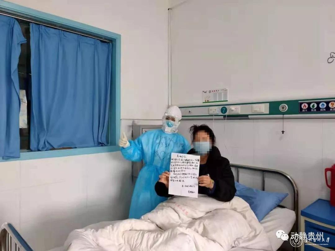 感谢贵州的医护人员夜以继日地关心、照顾我们病人,使我们的病得到了很好的康复和治疗。春节你们从很远的地方来到湖北,没有和家人陪伴过春节,而是陪伴病人过春节,在我身边打针、端水、送饭、清垃圾。在这里向全国人民说一声:贵州医护人员是最棒的,好样的。