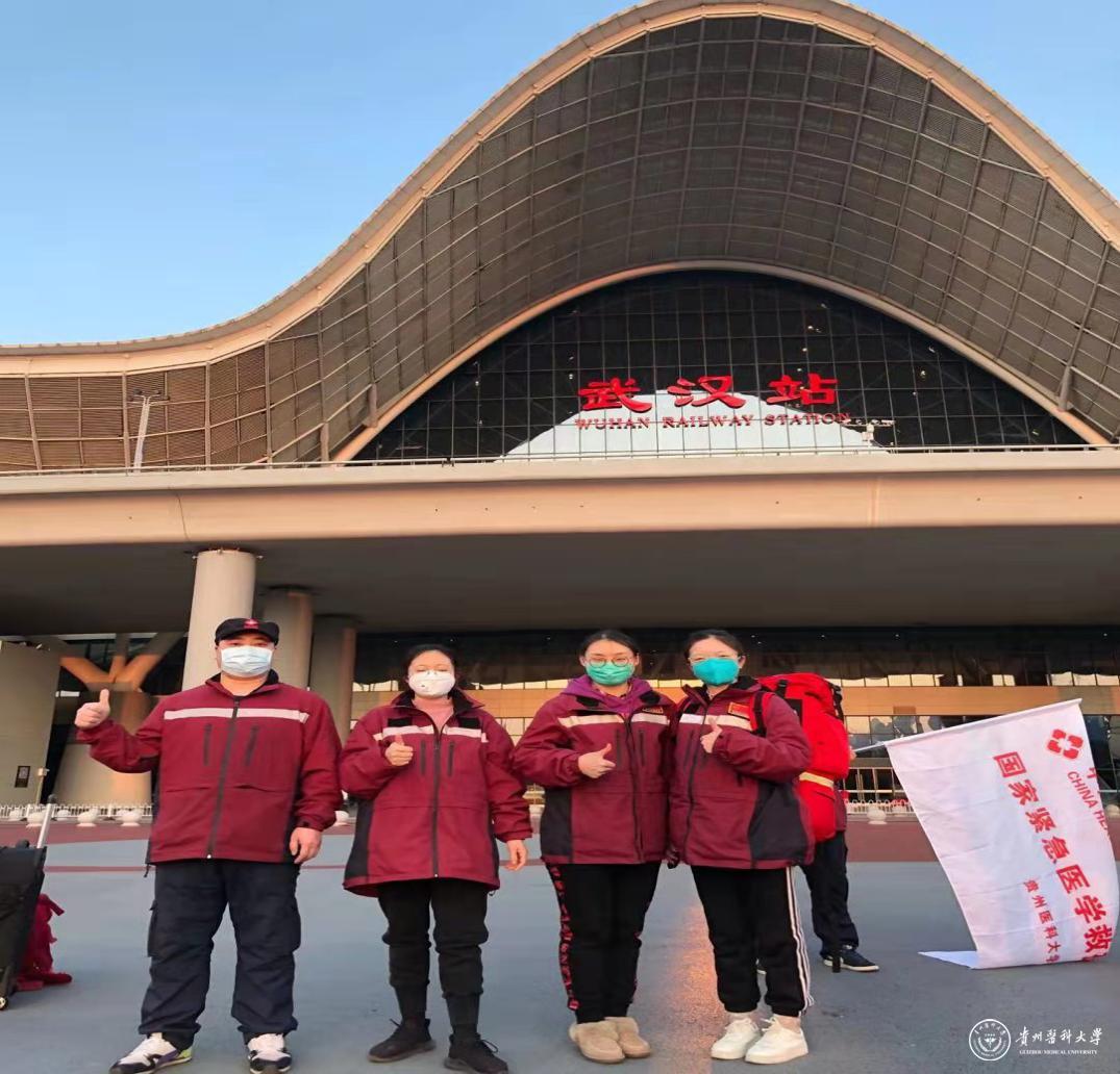 在这条前往战役的路上还有许许多多像程医生一样的逆行者,舍小家的团聚换大家的平安。2019级博士胡欢和杨洋,2月9日主动请缨,参与到贵州省派出的第三批国家紧急医学救援队伍中,他们用行动践行着救死扶伤、大爱无疆,我将无我、不负韶华的使命和担当。