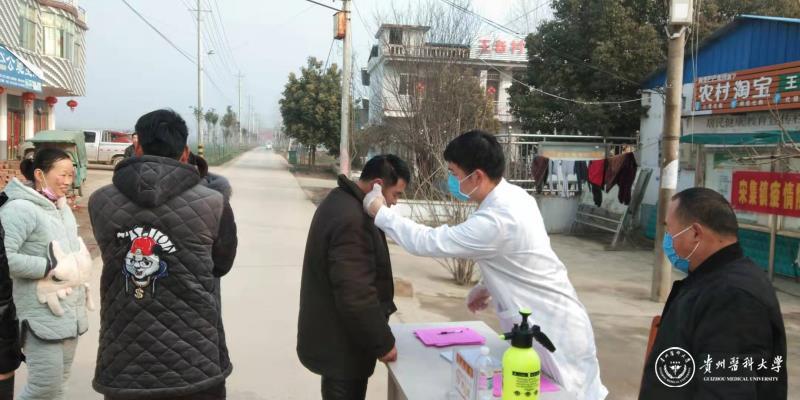 研究生党员王争地在老家安徽省阜阳市临泉县志愿参与疫情防控工作