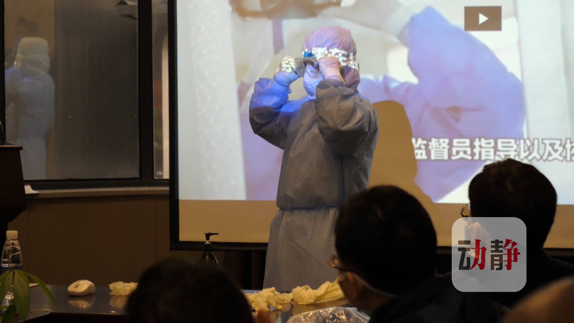 要如何在脱防护服帽子的时候完全不沾染到里面的衣服?队员小闫试了好几次还是卡在这一点上。