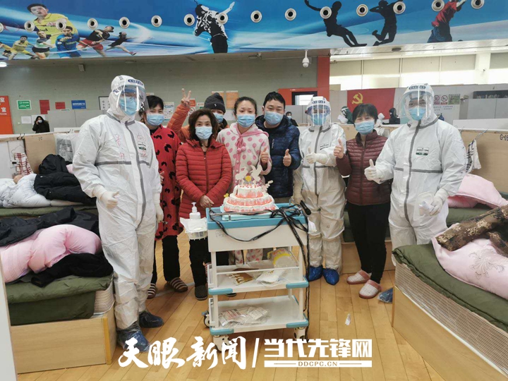 第二天,当队员们把蛋糕推进方舱时,这个巨大的惊喜让3位患者感动不已,周围的患者纷纷聚过来为他们唱起生日歌,共同分享喜悦。这一幕,成了这所方舱医院数日来最为温馨的场景,李莉说,“我们希望能让患者在特殊的时期感受到特殊的温暖,帮助他们建立良好的心态,争取早日康复”。