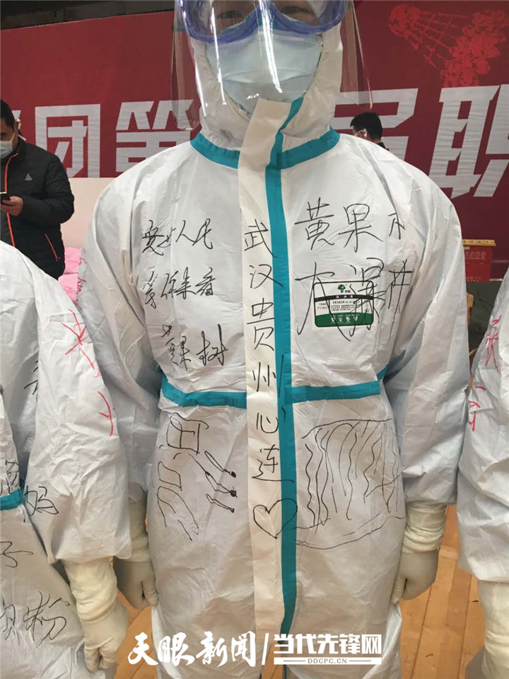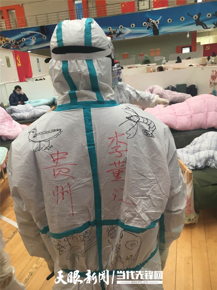 “我们的防护服是不是很漂亮?这都是患者给我们画的。”国家紧急医学救援队(贵州)队员、太阳成集团tyc33455cc官网附属医院心内科护士李董江笑嘻嘻地告诉记者,昨天他们跟患者来了一场别开生面的涂鸦赛,让武汉涂鸦和贵州涂鸦来了一次生动的“碰撞”。