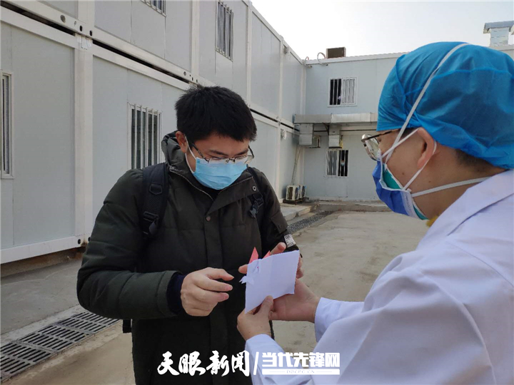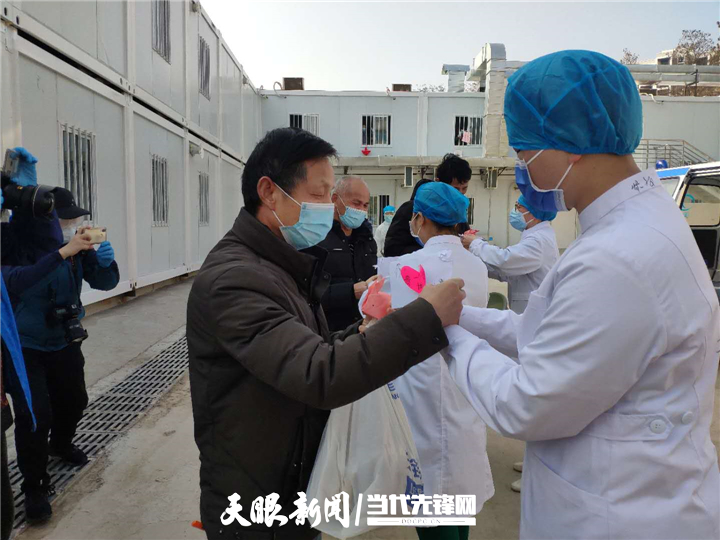 5名治愈患者均为新冠肺炎普通型,他们向医疗队队员深深鞠躬。“住在里面这么多天,现在终于不用再担惊受怕了,谢谢贵州医生!”一位患者竖起大拇指。