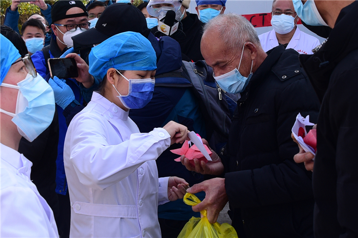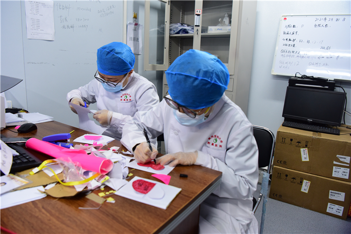 第六方面,我们注重加强患者营养支持,同时提供及时的心理援助和健康管理。由于大部分患者隔离治疗时间长,容易出现焦虑、烦躁,甚至冲动的行为,对治疗产生负面影响,我们充分考虑到了这一关键点,安排医疗队员陪患者聊天,及时进行心理疏导,加快了治愈的进程。