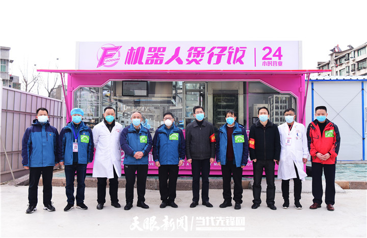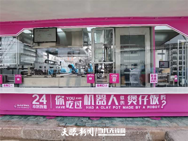 今天早上,雷山医院院区来了一个“庞然大物”,很新奇的“煲仔饭机器人”。打听下来才知道,这是贵州大后方把一台能够24小时做饭的机器人,连同10000份煲仔饭原料食材和包装材料直接送到了鄂州。该煲仔饭机器人可24小时不间断供应,每小时出品100-120份煲仔饭,无人化全自动出餐有效降低传染风险,为一线抗击疫情的医护人员提供餐饮保障。