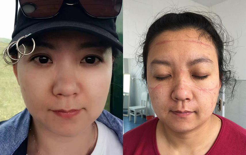 黑龙江省医院六顺社区医院护士长胡艳敏出发前两日,是儿子申朗的7岁生日,母子俩照了张合影。两天后,胡艳敏收到了支援湖北孝感的通知,立刻动身出发。支援孝感市汉川市人民医院重症病房近一个月,胡艳敏从隔离区出来后拍摄了一张照片,额头和鼻翼两侧都有深深的勒痕,鼻梁上的皮肤出现了一些破损。
