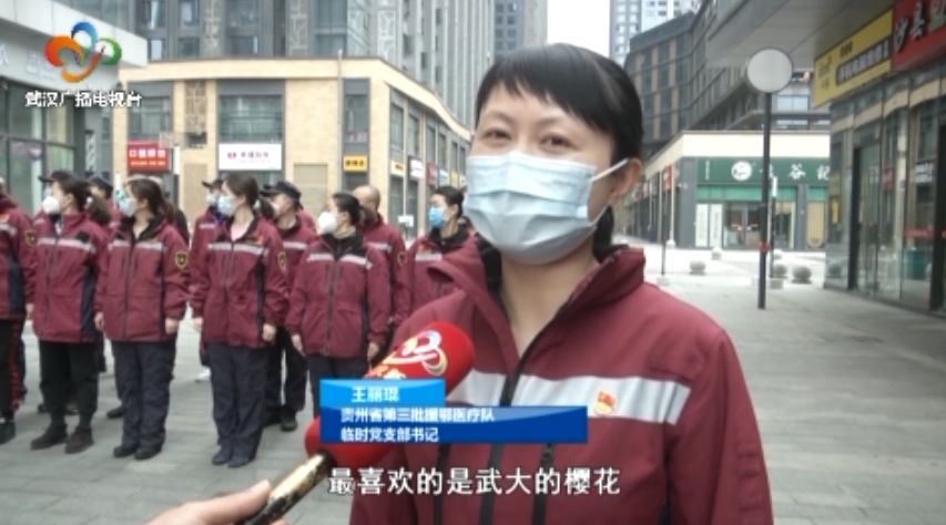 贵州省第三批援鄂医疗队临时党支部书记王丽琨:“最喜欢武汉的樱花,以前来看过一次。我希望下一次能看武大的樱花,还有我们的长江大桥和黄鹤楼,这些历史名迹都深藏我们心中,我希望明年能好好来看一下。”