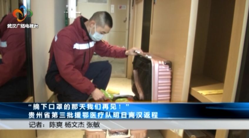 正在整理行装的小伙叫谭洪林,是贵州省第三批援鄂医疗队的护士。这是谭洪林第一次来武汉,没吃上热干面,没看到武汉大学的樱花,也没时间去一睹武汉长江大桥的风采,让他有些遗憾。但谭洪林说,自己也收获了满满的感动和喜悦。