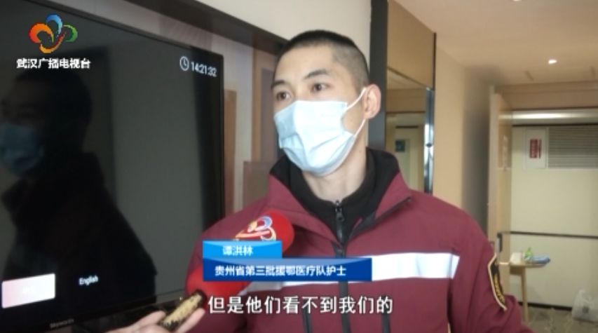 贵州省第三批援鄂医疗队护士谭洪林:“我们有时候能够看到他们的脸,但是他们看不到我们的脸。就想疫情结束之后,看看对方的脸,真正在武汉吃上一碗热干面,和大家有说有笑,开开心心聊天。”