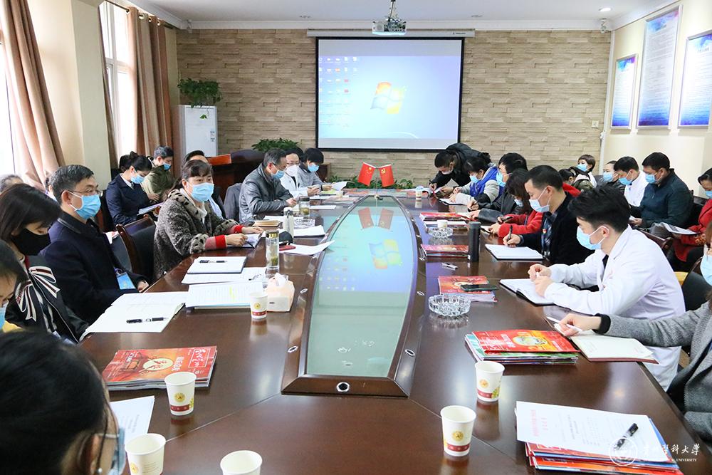 3月18日,口腔医院在行政楼五楼会议室召开党委扩大会议,学习传达省卫健委视频会议精神并总结部署近期医院疫情防控和安全生产工作。院党政领导班子,各临床、医技科室以及各行政职能部门主要负责人参加会议。会议由院党委书记张军梅主持。