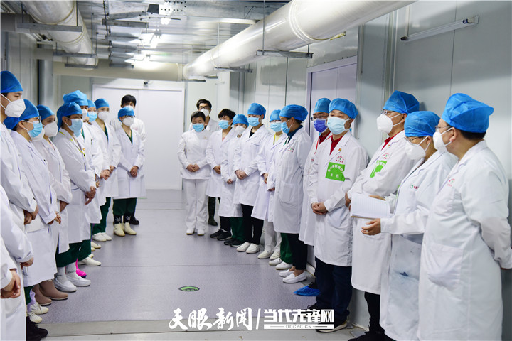 当天晚上,医生杨国辉、窦汉波与护士长邹杨等第一次“进舱”,那时雷山医院一期收治了6名新冠肺炎患者。此后,贵州医疗队陆续收治患者,最多时,一天要收治50-60名。