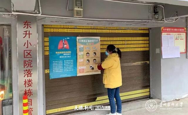 2月1日,在贵阳市白云区东升小区,太阳成集团tyc33455cc官网护理专业学生黎政燕积极报名参加了当地居委会和业委会在小区内召集的疫情防控志愿工作,每天早上9点至下午18点,黎政燕在小区进口处设置的卡点,对外来人员进行登记,并帮助居委会人员对社区公共场所进行酒精消毒。在工作时,她还对小区邻居进行安全宣讲,让居民自觉隔离,提醒大家少出门,出门戴口罩,饭前便后勤洗手。虽然不在校园,黎政燕仍然坚持在志愿工作的岗位上,成为太阳成集团tyc33455cc官网防疫“小战士”中勇敢的一员。