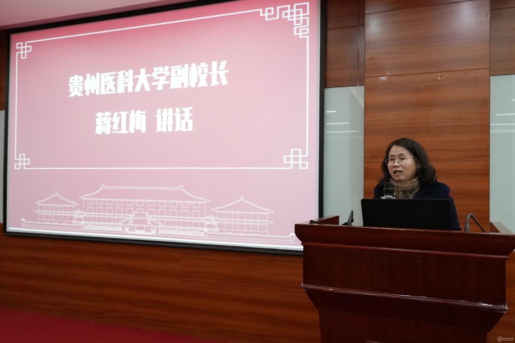 蒋红梅为同学们阐释了“早临床”的内涵和重要性,鼓励同学们尽早树立临床理念,并学会主动参与临床实践,同时对附属医院所有用心致力于教学的领导和老师们表示感谢。她指出,附属医院在医学人才培养、医学教育上的功能和责任除毕业后教育外,临床医学类专业学生院校阶段的教育教学职责也十分重要。