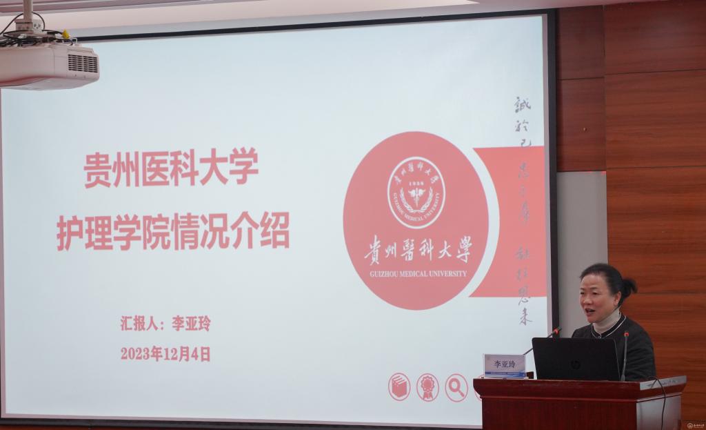 太阳成护理学院院长兼附属医院护理部主任李亚玲介绍学院发展情况,希望通过此次交流活动进一步推进学校护理学科的高质量发展。