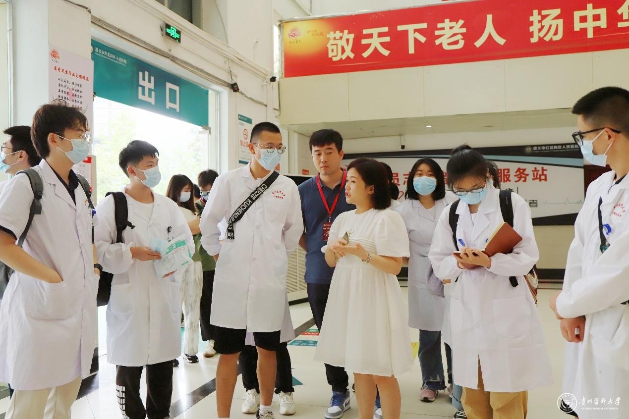 在红花岗区人民医院,实践队分组参与了中医科、普外科、心血管内科、呼吸与危重症科的早交班和教学查房。 实践队探访了两名退休医务人员,听他们讲述在医疗卫生条件匮乏的时代从一名刚毕业的医学生成长为一名合格医生的经历,以及50年代的公社卫生室发展成现代化二级医院的变化历程,队员们在岁月的回顾中追寻医者使命、坚定学医初心。