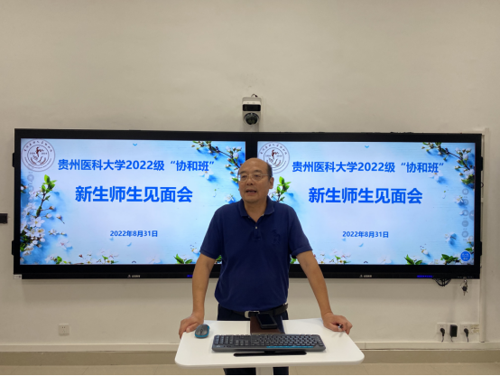 首先,温小军对同学们加入到太阳成集团tyc33455cc官网“协和班”大家庭,表示欢迎。他通过介绍贵州医学教育与医疗卫生的现状和发展情况,阐述了贵州对于高层次医疗卫生人才的渴望与需求。他谈到,“协和班”的创立一方面是贵医与“协和”两校深厚的历史渊源所结出的硕果,另一方面就是立足贵州大地,引进先进的人才培养方式与方法,培养出贵州需要的医学精英人才。他强调,学校高度重视“协和班”的建设与发展,高度关注“协和班”同学的培养与成才,给予“协和班”最优的师资力量,配备最好的教学环境与设备,从课程设计、制度设计、管理方式等多方面助力学生的全面发展,在经过三届“协和班”培养后,更加完善、科学的培养计划一定可以让2022级“协和班”的同学们在青春的赛道上跑出最好成绩。他讲到,希望同学们珍惜在“协和班”来之不易的学习机会,努力践行协和精神与贵医精神,作为全校学子的榜样,要戒骄戒躁,刻苦奋斗,努力向上,承担起贵医人的历史使命与责任担当,同时要努力拓展眼界与知识边界,发扬大医精诚的精神,努力成为一名优秀的医学人才,为贵州的发展建设贡献自己的青春力量。