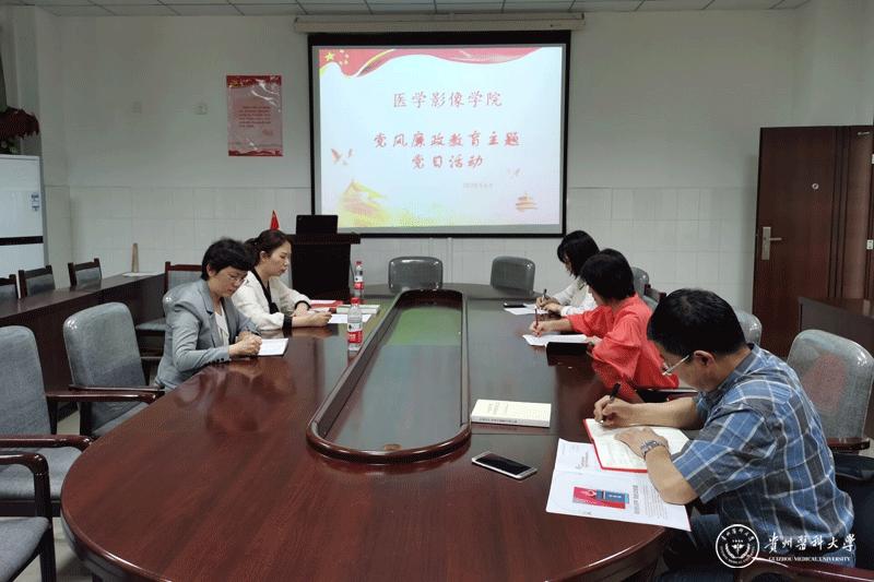 6月5日,医学影像学院教职工党支部在北校区影像学院会议室开展“谨廉政教育,促廉洁自律”党风廉政教育主题党日活动。本次活动以“讲授一堂廉政党课、领学一个廉政新规、开展一次警示教育、剖析一个典型案例、诵读一首廉政诗歌”的“五个一”活动形式,支部五名党员每人负责其中一项,由传统的“一人讲”变为“人人讲”,切实提高主题党日活动实效。学院党委书记李雪梅、副院长李兴以普通党员身份参加活动。活动由支部书记姚琨主持。