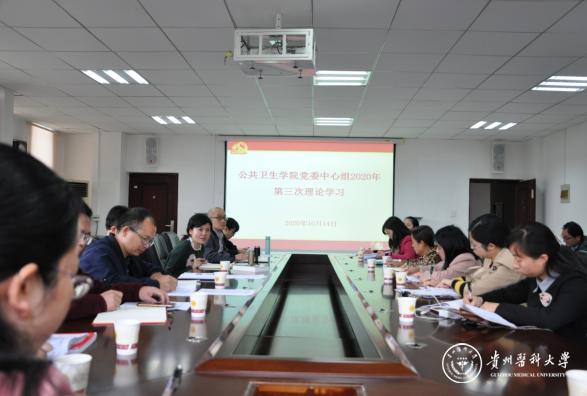 10月14日,公共卫生学院在博雅楼二楼会议室举行2020年第三次党委中心组集中学习。学院党委书记杨光红主持学习,学院党政领导班子、各行政科室负责人、各学系负责人、学院各党支部委员参加。