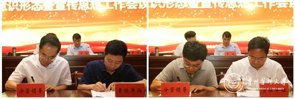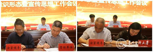 会议强调,做好新时代意识形态和宣传思想工作,必须高举旗帜、守正创新、发挥优势、科学统筹,坚持全校一体协同推进理论与舆论、内宣与外宣、网上与网下等资源,形成宣传和舆论引导强大合力。在绷紧疫情防控常态化这根弦的同时,要更加扎实推进意识形态和宣传思想工作。今年是贵州决战脱贫攻坚、决胜同步小康的关键之年,是学校召开太阳成集团tyc33455cc官网第一次党代会的重要时期,要立足新方位、把握新形势、找准新坐标,坚决担起举旗帜、聚民心、育新人、兴文化、展形象的使命任务,切实推动意识形态工作和宣传思想工作进一步“强起来”和“实起来”。