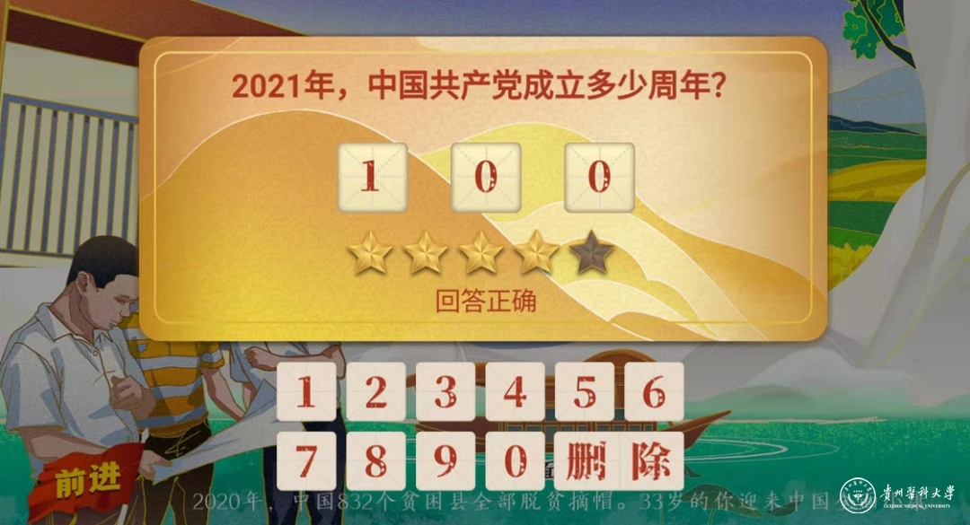 在“行船”过程中,H5加入了答题互动环节。每答对一道题就能够“点亮”一颗星,在答题的同时,学习知识、温故知新、有所收获。